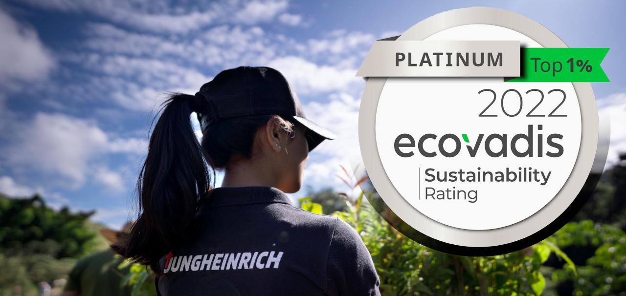 EcoVadis hylder især Jungheinrichs indsats inden for miljøbeskyttelse og vurderer virksomhedens engagement på dette område som "enestående". Jungheinrich forfølger konsekvent målet om at blive CO2-neutral og har klart forpligtet sig til Parisaftalens klimamål om 1,5-grader. Brugen af vedvarende energi, for eksempel ved at producere sin egen solenergi gennem solcelleanlæg, blev også inkluderet i EcoVadis-klassificeringen. Desuden vedtog Jungheinrich sin egen arbejds- og menneskerettighedskodeks for mange år siden, som alle direkte salgsselskaber i 41 lande verden over har forpligtet sig til. For at sikre bæredygtige indkøb evaluerer Jungheinrich systematisk sine leverandørers adfærd inden for menneskerettigheder, miljø og compliance. Dette involverer i øjeblikket over 700 leverandører, hvilket repræsenterer mere end 75 procent af Jungheinrichs globale indkøbsvolumen.