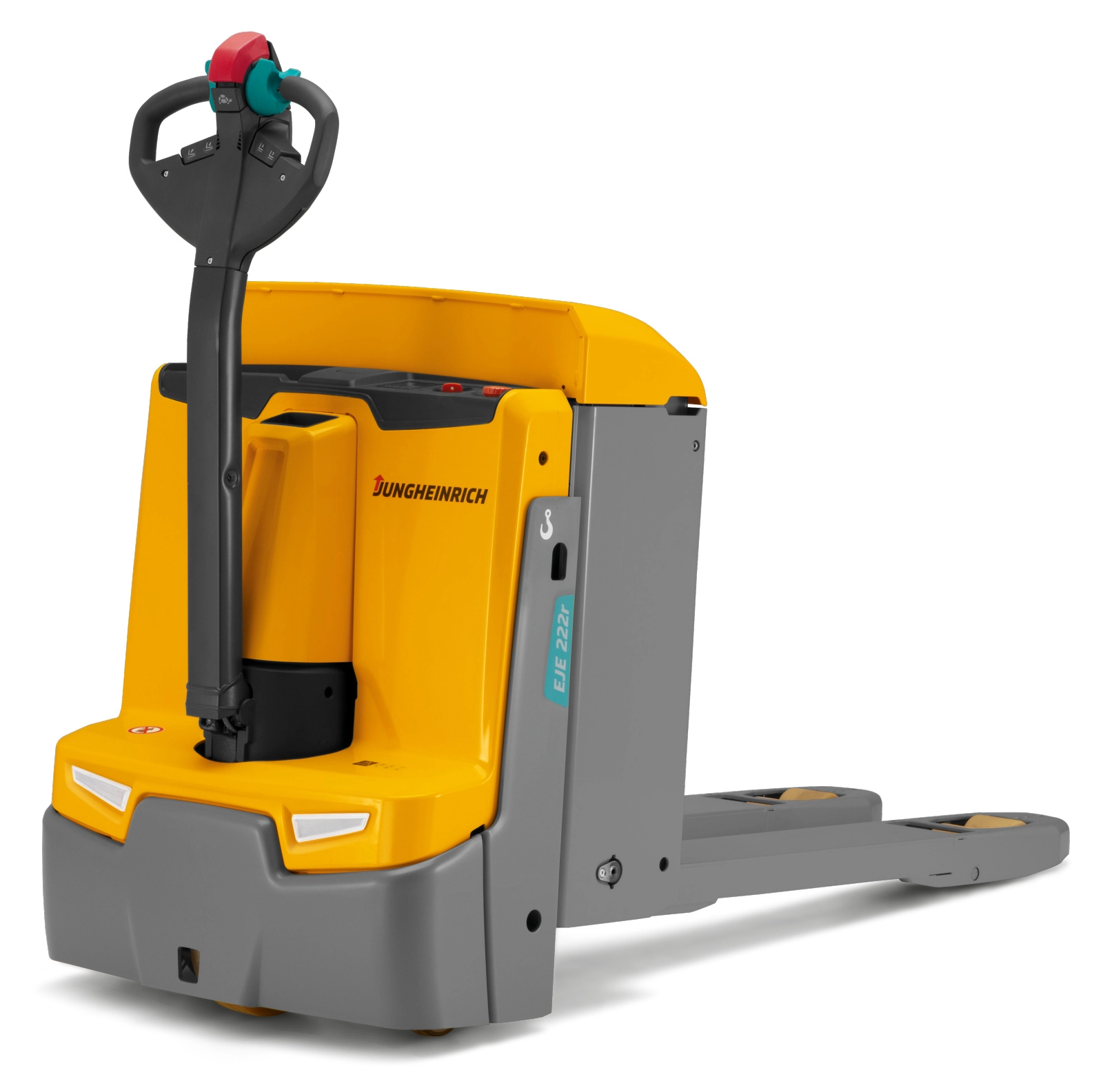 Our robust and powerful EJE 2r electric pedestrian pallet truck is the perfect assistant for efficient loading and unloading of HGVs on the ramp. A patented ramp lift reliably compensates for any height differences, allowing problem-free loading and unloading of the first row of pallets in the HGV. A powerful 3-phase AC motor with a high degree of efficiency delivers impressive performance, while state-of-the-art control electronics and a tiller arm perfectly adapted to the operator facilitate safe and intuitive working. Maximum protection against breakdowns is ensured by the robust frame, reinforced forks and non-contact sensor technology in the tiller arm. In terms of durability, the EJE pallet trucks convince with long-lasting batteries for intensive applications, low maintenance and reduced wear.