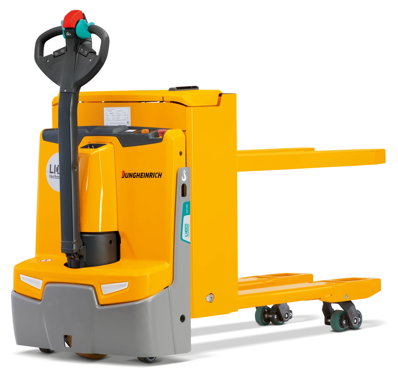 The agile and ergonomic EJE C20 electric pallet truck is the flexible companion in scenarios where goods are moved and picked. In addition to the support arm lift, the truck has an integrated simplex mast that can lift goods up to 752 mm. This places goods at an ergonomic reach height, allowing half pallets to be removed quickly and efficiently. Consequently, this electric pedestrian pallet truck is the ideal truck for retail. Especially when goods must be moved quickly and efficiently, the EJE C20 offers high speed and powerful acceleration with low energy consumption. Safety is also a top priority for the EJE C20. The low-mounted tiller ensures that a safe distance is maintained between the truck and the operator. And when space is particularly tight, the slow travel button enables safe manoeuvring with an upright tiller.