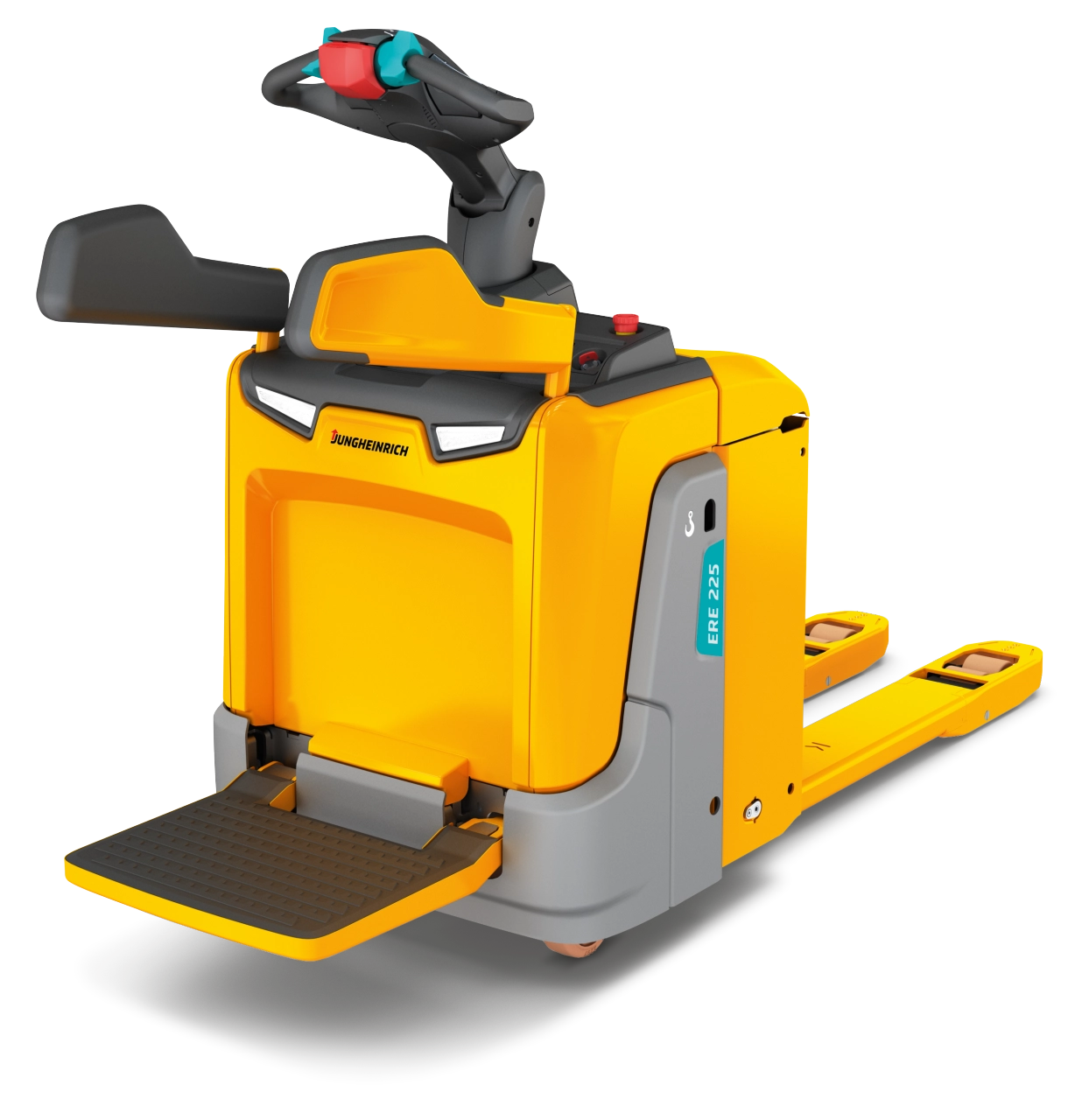 Just hop on and increase your turnover with the robust and adaptable electronic ride-on pallet truck ERE. With this truck you combine agility with the comfort of a ride-on vehicle. With their modular system they are extremely flexible and adapt perfectly to your individual application. From increasing efficiency and adding more safety to equipment for outdoor usage, the ERE trucks are available in numerous modifications. Depending on ergonomic approaches, the ERE offers for example four different platform variations, quick solutions for your needs. They reach high speed and strong acceleration thanks to their powerful propulsion concept. This offers maximum turnover of goods with a decrease of energy usage of up to 33 percent. Our 3-phase AC motors deliver high performance and quick reaction times without losing their agility.