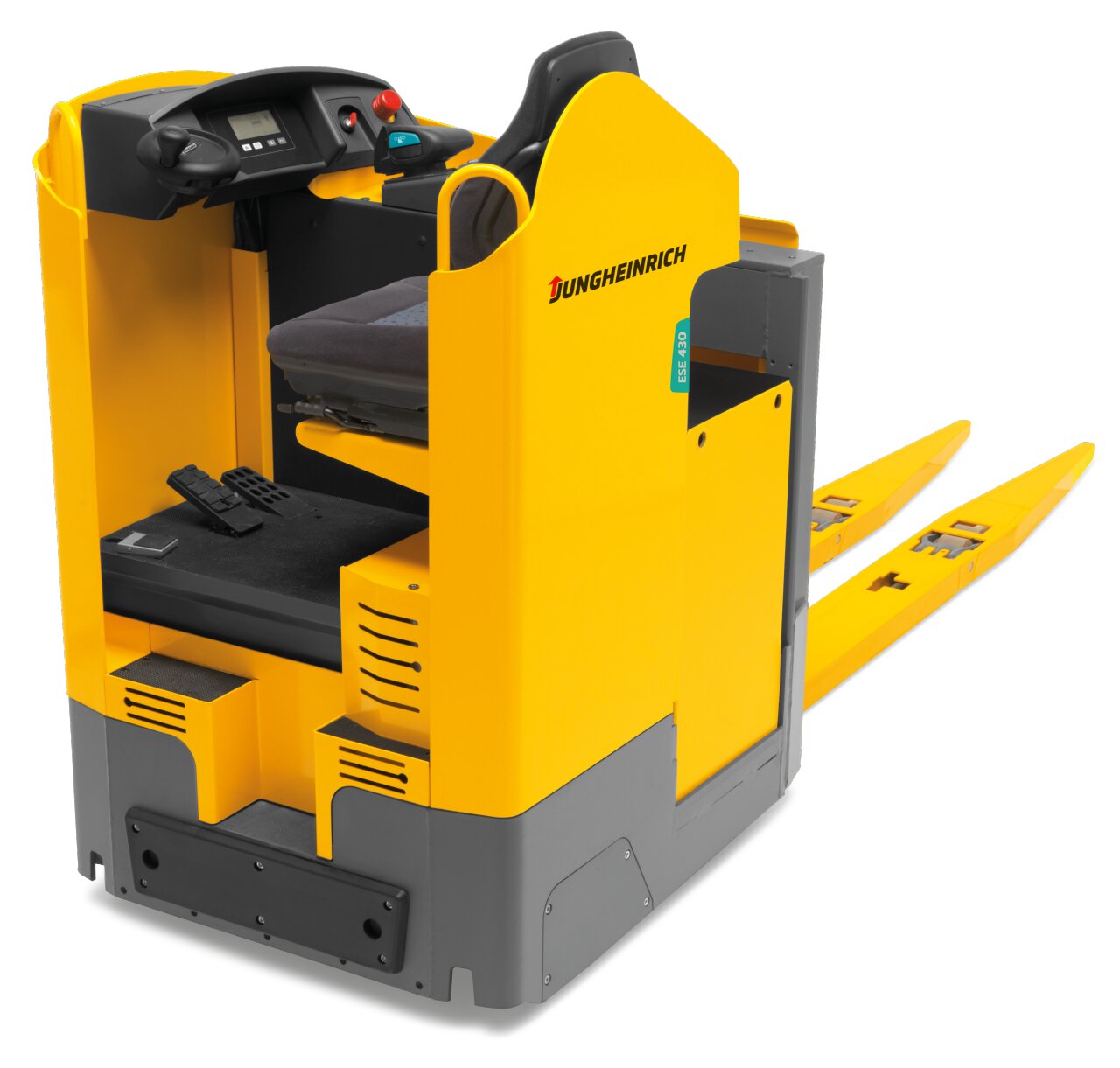 Den sikre og robuste elpalleløfter med sidevendt sæde, ESE i 4-serien, er ideel til transport af flere paller over lange strækninger. Vekselstrømsmotoren på 48 V muliggør dynamiske bevægelsesforløb og høje sluthastigheder samt den højeste effektivitet og omlæsningskapacitet. For at sikre problemløse processer har ESE en særlig høj sikkerhed og ergonomi: Hastighed, bremse og dødemandsknap kontrolleres let med pedaler, der er lette at nå, og løftet styres enkelt med styregrebet soloPILOT uden at flytte hånden. Med den højdeindstillelige fodplade, der fås som tilvalg, og det indstillelige rat får alle truckførere en behagelig, sidevendt siddeposition. Endvidere er skift af køreretning forenklet meget med skiftemuligheden mellem 180°- og 360°-styretilstanden. Særligt høje batterikapaciteter og den ekstremt robuste konstruktion gør ESE’en til den perfekte hjælper ved intensive og lange indsatser.